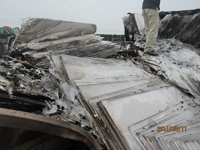 出险原因:轮胎突然自燃,导致车上货物80%烧毁;